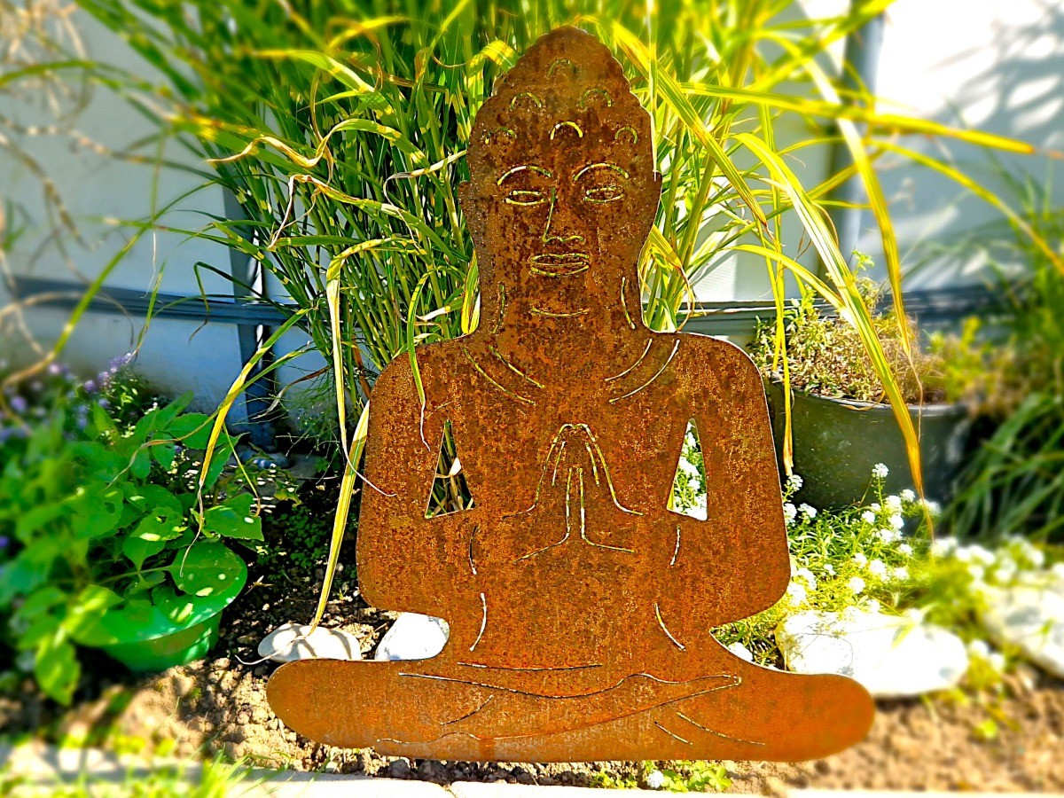 Dieser schöne Buddha Gartenstecker aus Edelrost bringt Ruhe und Gelassenheit in Ihren Garten, Vorgarten oder in Ihr Blumenbeet. Diese anmutige Figur wartet mit Ihnen geduldig auf die anstehende Ernte oder auf die Blütenpracht. Auch auf grünem Rasen dekoriert das rostige Braun Ihren Garten und sorgt für einen wundervollen Kontrast. Auf der Terrasse leistet Ihnen der Buddha mit seiner ruhigen Ausstrahlung optimale Gesellschaft und lässt Sie rund um die Uhr entspannen.