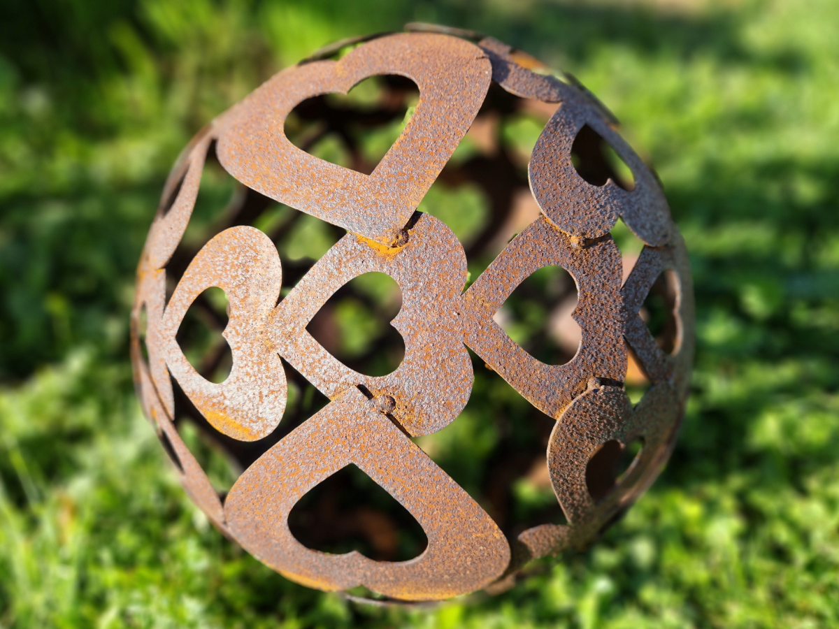 Dank der offenen Unterseite steht die Rostkugel Herzen D 30cm sicher an ihrem Platz, ohne zu rollen, und kann flexibel an verschiedenen Standorten eingesetzt werden. Ob allein platziert oder in Kombination mit der größeren Variante (Ø 40 cm) – diese Kugel verleiht deinem Garten oder Zuhause eine liebevolle Note. 🌸🌿