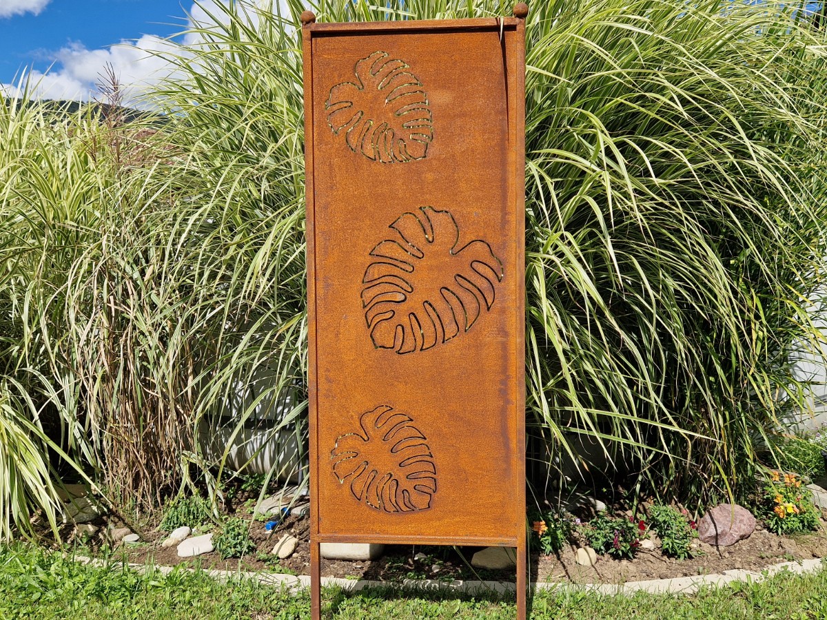 Die Trennwand Blätter aus Rostmetall vereint Sichtschutz und Gartendekoration in einem. Mit einer Höhe von 165 cm und einer Fläche von 52 x 130 cm bietet sie nicht nur Schutz vor neugierigen Blicken, sondern setzt auch stilvolle Akzente im Außenbereich. Das moderne Blättermotiv bringt Leichtigkeit und Naturverbundenheit in die robuste Rostoptik und fügt sich harmonisch in jede Umgebung ein.