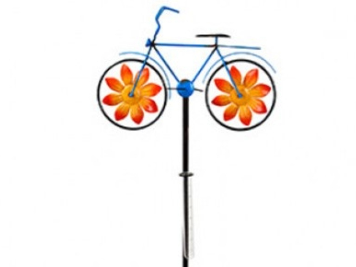 Windrad in Form eines Fahrrads mit Blumenrädern